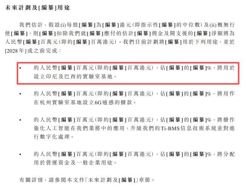 这次赴港上市,钛和检测谋划将募资用于印尼及巴西实验室配置、杭州6G通感实验室诞生、AI 技能讹诈及营运资金补充。